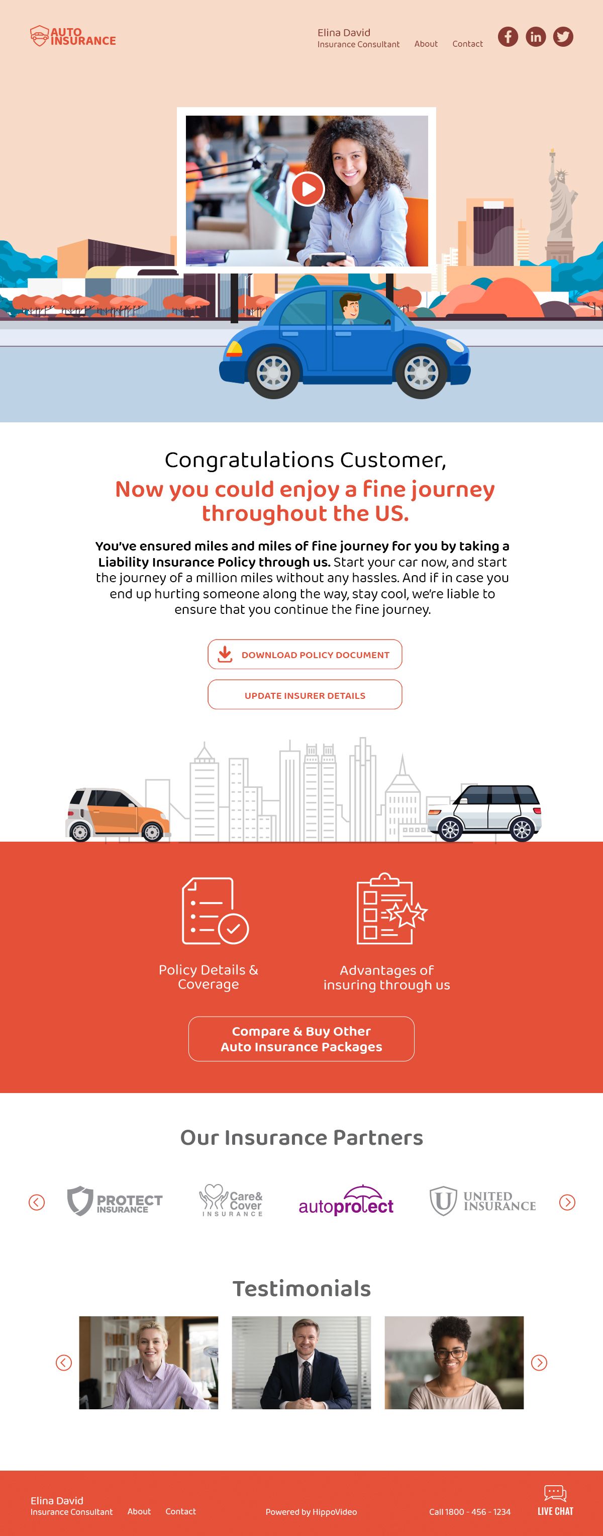 Delight your customer by sending them a warm onboarding video message through this landing page. You can also deliver assurance to your customer about compliance with liability insurance laws, even when driving through other states.